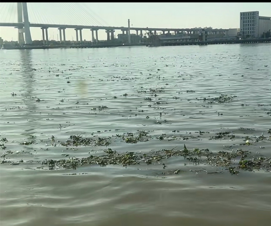 11月23日,有市民反映,在黄浦江南浦大桥至卢浦大桥区域,漂浮着大量水葫芦,一直从滩涂蔓延到江面。